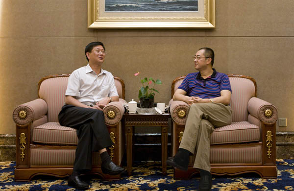 夏海钧总裁与江西省鹰潭市常务副市长宋迪维(左)亲切交谈