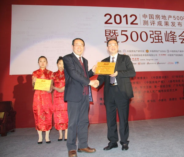 3月21日,由中国房地产研究会、中国房地产业协会、中国房地产测评中心三家机构联合主办的2012中国房地产500强测评成果发布会暨500强峰会在京举行。恒大连续三年蝉联全国销售面积第一,被特别授予“千万销售面积奖”,全国政协常委、建设部原副部长、党组副书记、中国房地产研究会会长、中国房地产业协会会长刘志峰向恒大集团董事局副主席、总裁夏海钧博士颁发千万销售面积奖。在各类分榜单中,万科、恒大平分秋色,强势领跑中国房企。