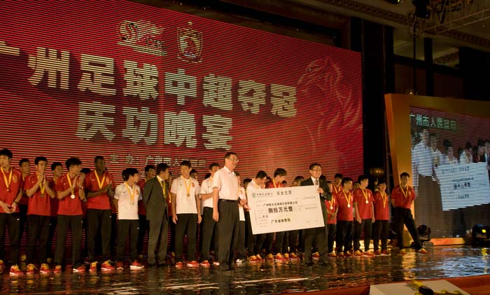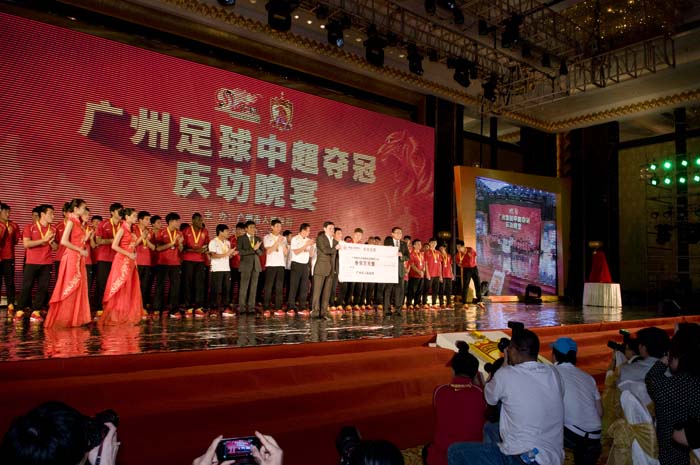 本赛季中超联赛,“升班马”广州恒大提前4轮夺得冠军,创造了广州足球的最好成绩,创造了中国体育史上唯一一次“凯泽斯劳滕”的奇迹。在联赛11月2日收官之后,11月3日广州市政府特别为广州的城市英雄主办了一场盛大的庆功晚宴。