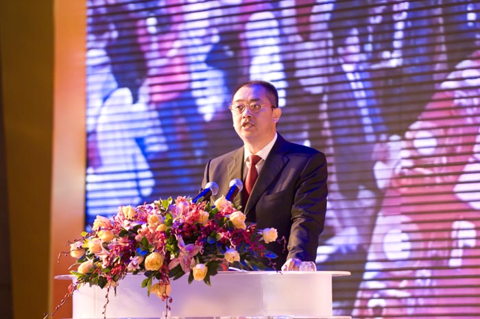 今天,我们欢聚一堂,满怀激动和喜悦,共同庆祝广州足球中超首冠这一历史性的时刻。首先,我谨代表台下就坐的恒大集团董事局主席许家印教授和3万多名恒大员工,对广州足球的成功表示最热烈的祝贺!向省市、中国足协各级领导、各主管部门对恒大俱乐部的厚爱与支持、广大媒体和球迷朋友们对广州足球的坚守与呵护,表示最诚挚的感谢!