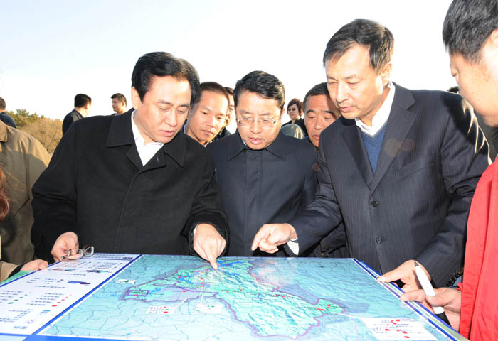 黑龙江副省长孙尧(前排右一)、牡丹江市委书记张晶川(前排中间)陪同许家印教授实地考察