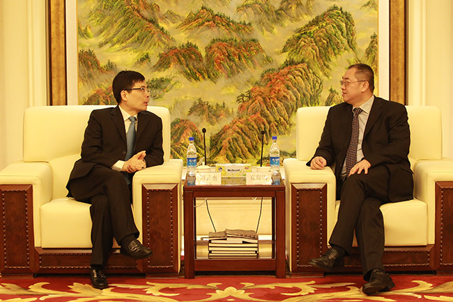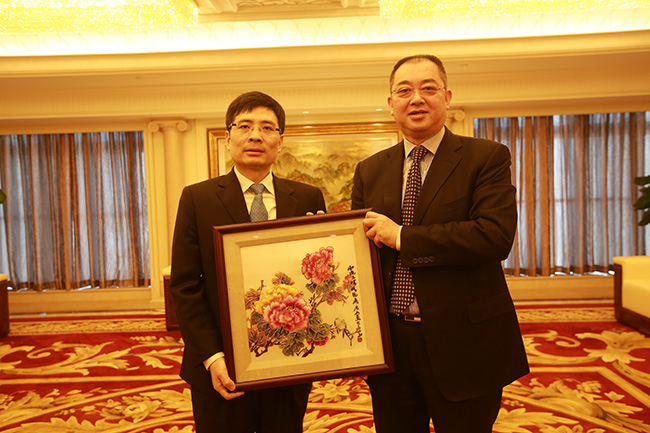 签约仪式前,夏海钧总裁与周云杰总裁进行了深入会谈,夏海钧总裁代表恒大集团向海尔集团赠送了礼物。