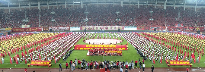 10月22日,广州恒大队在天河体育场以5比1狂胜贵州恒丰队,提前2轮勇夺中超冠军,成为中国职业足球历史上第一支7连冠球队,追平了世界职业足球联赛连续夺冠的世界纪录。赛后,广州市人民政府发来贺信,赞扬恒大队“书写广州足球新篇章”,“为广州添了彩、争了光”,并希望恒大队继往开来,“为加快建设广州国际体育名城努力奋斗”。