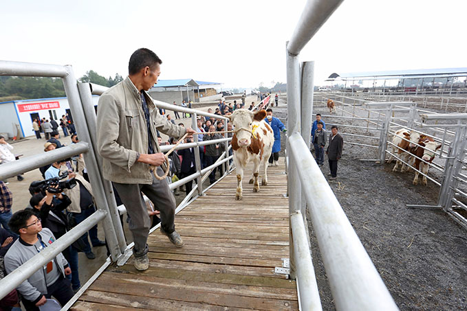 贫困群众通过贴息贷款可以从恒大集团援建的牛超市里购买西门塔尔牛