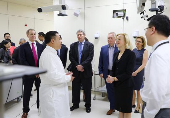 布莱根和妇女医院院长Elizabeth Nabel带领专家团队参观医院并在直线加速器室交流