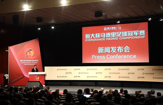 恒大杯马德里足球冠军赛奖杯揭幕仪式