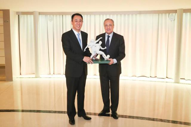 西班牙皇马俱乐部主席弗洛伦蒂诺等皇马高层会晤许家印、张近东、周金辉等一行,并就足球青训进行了深入交流。