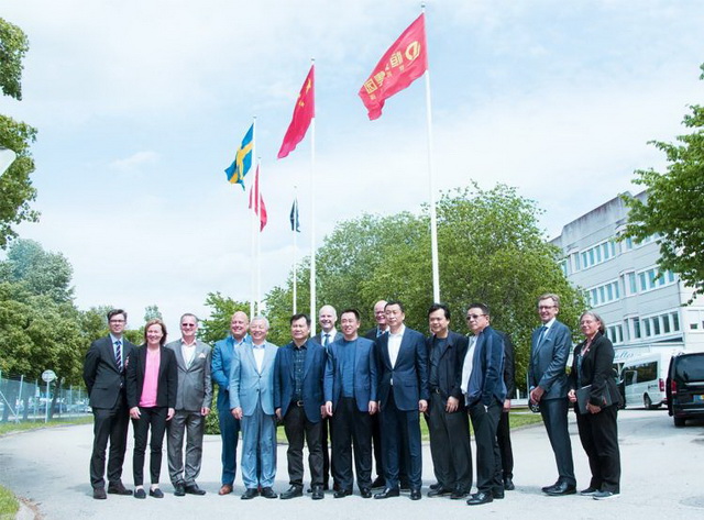 许家印与张近东、张松桥、周金辉等在恒大NEVS瑞典总部门前合影