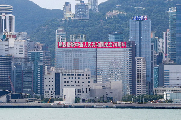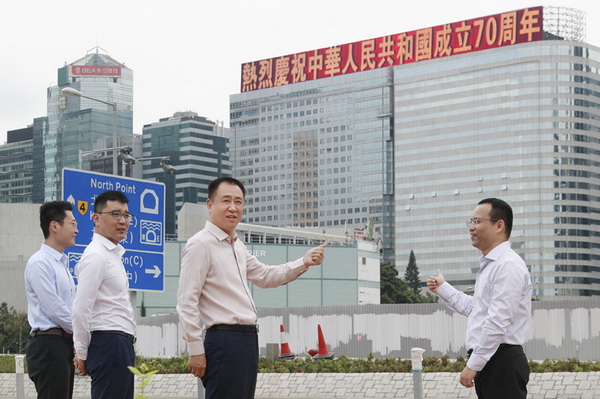 献礼新中国成立70周年!恒大香港总部大楼打出庆祝标语 许家印现场检查