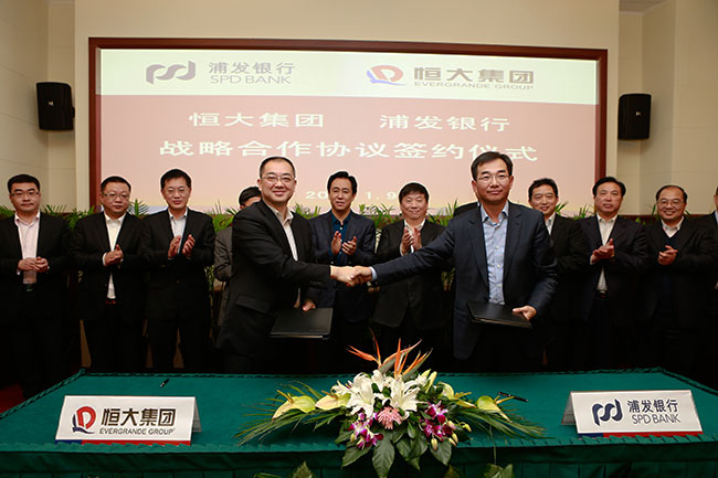 1月9日,恒大集团与浦发银行战略合作签约仪式在上海浦发银行总部举行,双方达成全面、深入、广泛的战略合作,开创银企合作发展新模式。此次双方合作将涉及授信、银行融资、直接融资、投资银行业务、国际金融业务、金融创新产品开发等领域,浦发银行将向恒大提供单笔200亿元的综合授信。