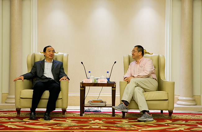 夏海钧总裁(右)与中国银行广东省分行行长白志中(左)亲切交流