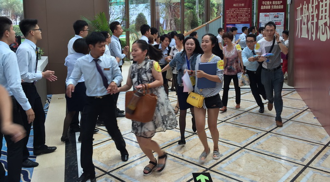 急鼓声响,紧张的抢房大战正式开始。为抢一套房源,被摇中号码的客户都满脸兴奋,争先进入选房区。随着越来越多的选房客户排队进场选房。