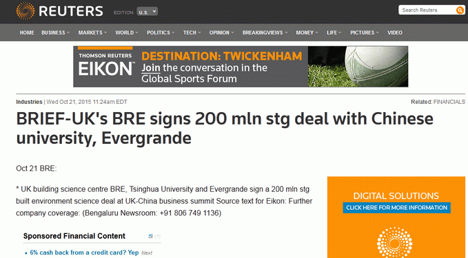 媒体关注许家印主席英国行