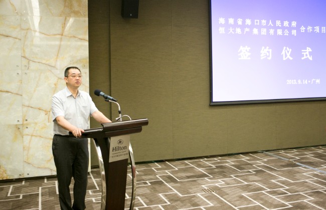 夏海钧总裁在致辞时指出,海南是我国最大的经济特区和唯一的热带岛屿省份,拥有绝版的、世界一流的优质旅游资源,自然环境优越,发展潜力巨大。恒大集团作为中国的特大型企业集团,在布局全国、迈向世界的过程中,尤其需要有非常广阔发展前景的大项目支撑。自2009年进驻海南以来,恒大站在建设国际旅游岛的角度,在海口、儋州等地开发多个大型民生项目,并倾力打造规模最大、功能最全、档次最高的世界顶级文化旅游综合体。这次签约的项目,也将建设成体现海口特色、恒大标准、国际档次的重大战略性城市综合性开发项目。夏总裁表示,有了海口市委市政府的大力支持,恒大一定能为提升海口的城市建设、经济发展、城市魅力等贡献更大的力量。