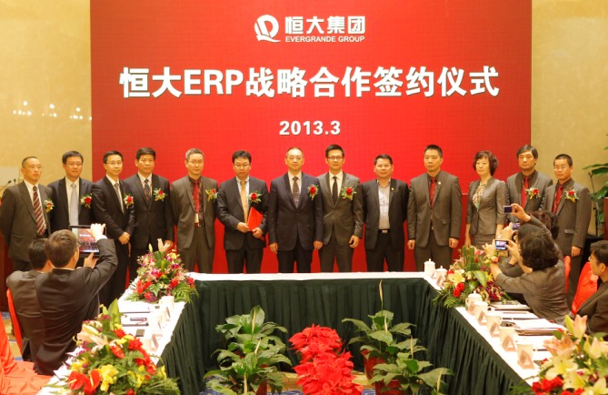 恒大与两家世界一流企业建立ERP战略合作,标志着公司ERP项目正式启动,我们将结合SAP公司一流的信息系统架构、技术和解决方案,以及IBM公司经验丰富的实施顾问、实施方法论和最佳管理实践,陆续完成项目管理、合同管理、采购与供应链管理、设计管理、商业运营管理、客户关系管理、财务管理、资金管理、人力资源管理、资产管理、学校管理、商业智能等涵盖公司大部分业务的12个系统模块信息化建设。