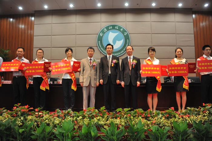 10月1日上午,武汉科技大学“许家印奖学金”颁奖仪式在武科大黄家湖校区崇实会堂盛大举行。武汉科技大学党委书记刘华才、校长孔建益等学校领导参加了颁奖仪式,该奖学金的设立者、恒大集团董事局主席、武汉科技大学博士生导师许家印教授亲自为获奖学生颁发了奖金。