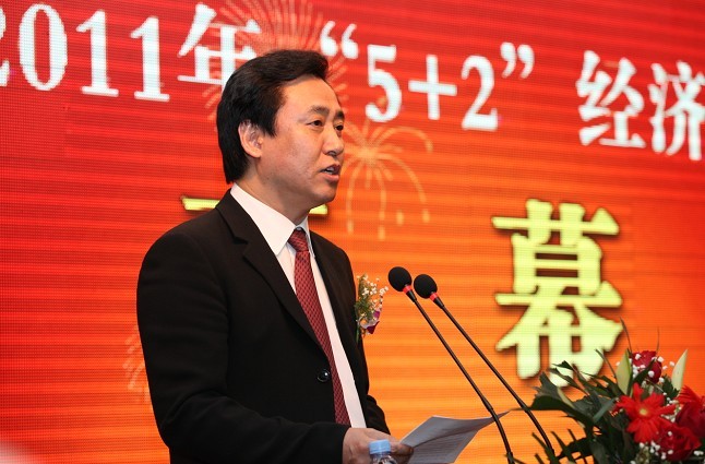 4月27日,2011年“5+2”经济合作活动开幕式在河南省周口市隆重开幕。广东省河南商会会长、恒大集团董事局主席许家印教授出席活动。