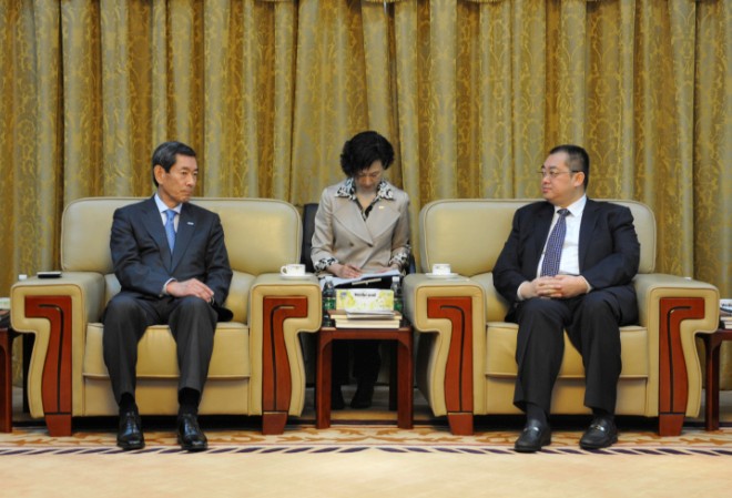 夏海钧总裁与松下电工株式会社长荣周作社长进行交流
