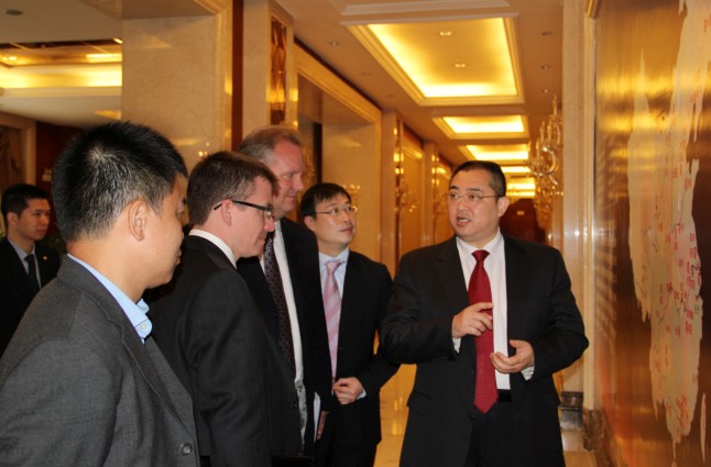 夏海钧总裁向惠誉国际全球董事总经理一行介绍集团发展情况