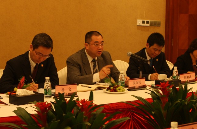 当天上午,调研座谈会在恒大酒店第一会议室成功召开。恒大集团董事局副主席兼总裁夏海钧博士,副总裁徐湘武、何妙玲、徐文、林漫俊、王川、伍立群等集团高管人员出席座谈会,并与刘志峰会长等领导进行了热烈而深入的研讨交流。