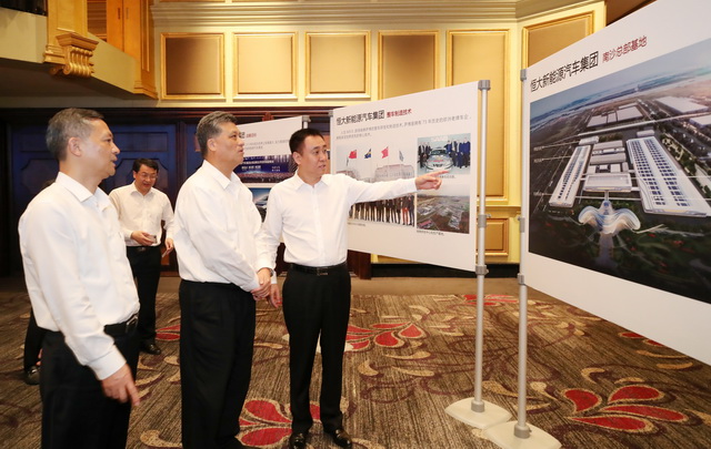 许家印向马兴瑞省长和张硕辅书记介绍恒大新能源汽车情况