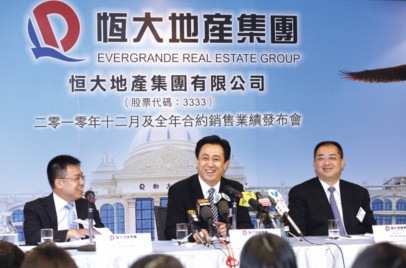 1月10日,恒大2010年全年销售业绩发布会在港举行。数据显示,在调控严厉的2010年,恒大业绩逆市飘红,全年销售额达504.2亿元。同期,恒大管理层公布2011年全年总合约销售目标为700亿元、全年交楼目标为600亿元,并宣布开展全球发债的消息。