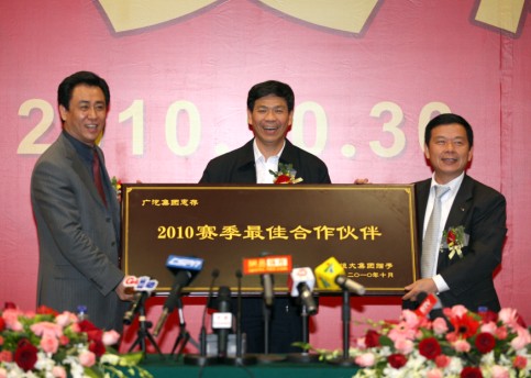 恒大集团向广汽集团颁发“2010赛季最佳合作伙伴”奖