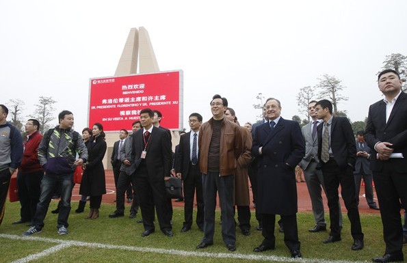 许主席首先对弗洛伦蒂诺主席的来访表示欢迎,并与弗洛伦蒂诺一同听取了恒大皇马足球学校刘江南校长关于学校建设情况的报告。2011年8月2日,广州恒大足球俱乐部与西班牙皇家马德里俱乐部在广州达成战略合作,双方加强在青训等多领域的合作,并在中国建立恒大皇马足球学校。此后,双方合作不断深入,今年3月28日,恒大与皇马正式签约,由皇马派遣教练团全权负责恒大皇马足球学校学生的足球训练。9月3日,学校如期开学,并于10月9日举行了盛大的开学典礼。至此,恒大集团与皇马俱乐部的合作,在短短一年多的时间里,结出了丰硕的成果。