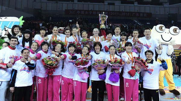 3月3日,2011-2012赛季全国女排顶级联赛总决赛在广州举行,坐镇主场的广东恒大女排在总决赛第二回合中以3比2力克“五冠王”上海女排,从而凭借本赛季22战20胜、总决赛两回合全胜的战绩一举夺冠,主教练郎平荣膺本赛季最佳教练员。正在北京参加两会的广东省委副书记、省长朱小丹第一时间向广东恒大女排俱乐部发来贺电,祝贺队伍首夺顶级联赛冠军。