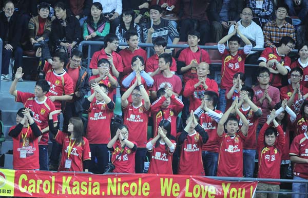 现场球迷向广东恒大女排问鼎联赛冠军表示祝贺