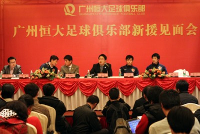 见面会上,恒大足球俱乐部董事长刘永灼表示,广州恒大足球俱乐部作为一支中超新军,肩负广州足球重返巅峰之重任。俱乐部一直秉承恒大“精心策划、狠抓落实、办事高效”的工作作风,在备战中超方面,进行了有针对性的部署,奉行高标准、严要求的原则,由主教练确定引援范围,俱乐部全力支持,对有实力的球员进行了严格的筛选,最终确定引进张琳芃 、姜宁、冯潇霆、杨君四位国字号球员。
