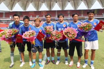 据悉,比赛开始前,恒大足球俱乐部为李帅、李志海、李岩、冯俊彦、卢琳、黄志毅、戴宪荣等7名为广州队“百战”绿茵场的球员举行颁奖典礼。俱乐部董事长刘永灼表示,“一百场精彩的比赛,就是九千分钟的奋力拼抢,四度春秋的风雨砺练,‘百场球员’兢兢业业为广州的足球事业收获明天,希望这种坚毅不拔的广州足球精神能代代相传下去。”