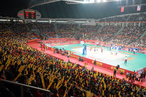 场面和气势都好似一场排球盛典,让在场的观众都为之感叹