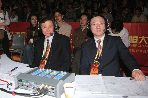 担任本场比赛直播解说的中央电视台元老级解说员宋世雄和孙正平