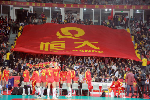 2月2日晚,2010年“中美女排对抗赛”在广州体育馆敲响战鼓,恒大女排以3:0的漂亮比分,干净利落地战胜了来访的美国国家女排。