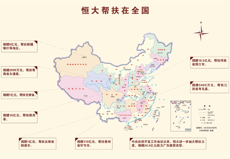 恒大集团自2015年中央扶贫开发工作会议吹响脱贫攻坚战号角以来,积极响应党和国家的号召,举全公司之力参与脱贫攻坚事业,共计捐赠178.7亿元扶贫资金,先后派驻2856人的专职扶贫团队,助力贵州、广东、河南、陕西、新疆、甘肃、云南、江西、青海等9省区75个县高质量打赢脱贫攻坚战。